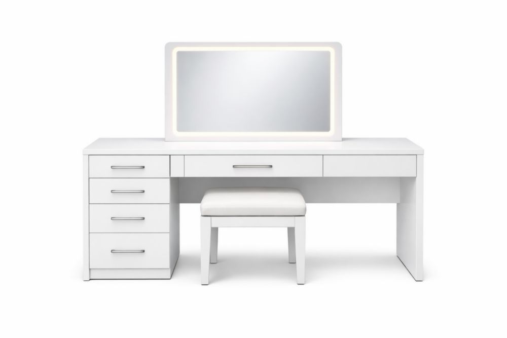 White Vanity Set with Mirror and Stool